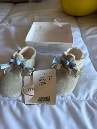 Preciosos zapatos para bebé de la marca Mayoral. - Color beige. - Diseño con lazo y detalles. - Material suave y cómodo.