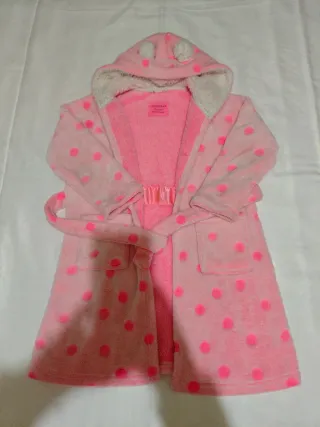 Bata polar para niña de Primark con un divertido estampado de lunares. - Color rosa. - Diseño con capucha y orejitas. - Cinturón para ajustar. - Bolsillos delanteros.