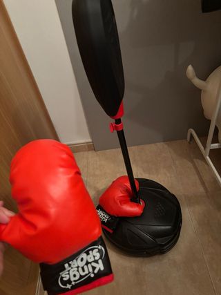 Set de boxeo para niños, ideal para iniciarse en el deporte. Incluye saco y guantes. Es de juguetes, lo ha usado una vez.