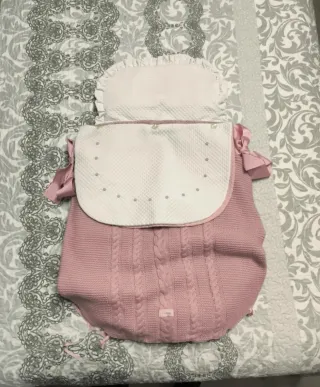Saco capazo bebé rosa empolvado