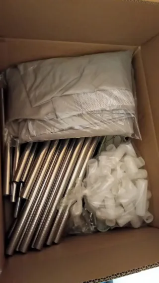 Parque infantil XL de tela, red y estructura metálica. - Color gris. - Puertas de acceso con cremallera. - Fácil de montar y desmontar.