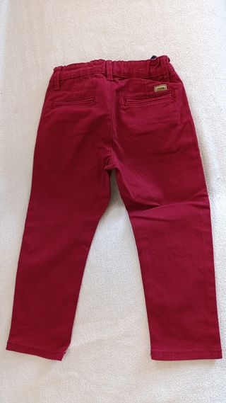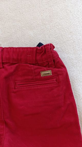 Pantalón de la marca Mayoral en color rojo. Con poco uso, 2 años y 92 centimetros - Detalle de etiqueta de la marca en el bolsillo trasero.