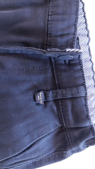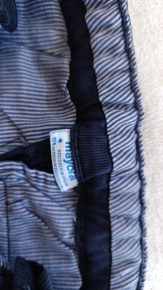 Pantalón de la marca Mayoral en color azul marino con un diseño de rayas finas, con poco uso, parecido a la pana. de 3 a 4 años, 104 centimetros. - Talla: 104 cm - Diseño: Rayas finas - Color: Azul marino - Fabricado en: Bangladesh - Diseñado en: España