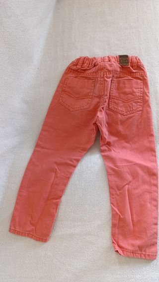 Pantalón vaquero de la marca Top Top en color salmón. Ideal para los más pequeños, con poco uso, de 2 a 3 años, 98 centimetros. - Cintura elástica. - Bolsillo trasero. - Detalle de etiqueta con logo.