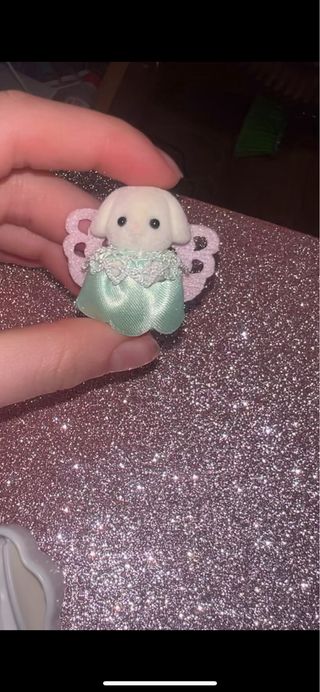 Figura de Sylvanian Families, personaje Conejo Flora. - Diseño de hada. - Vestido verde menta con detalles. - Alas rosas. VENDO O CAMBIO , esta sin abrir porque lo tengo 2 veces No hago envios ☺️