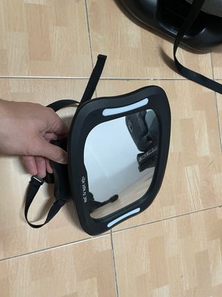 Espejo diseñado para colocar en el coche y poder ver al bebé. - Marco negro. - Correas ajustables para sujeción. - Diseño moderno con detalles blancos. - Luz led controlada por mando a distancia