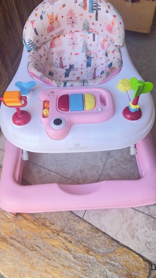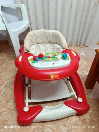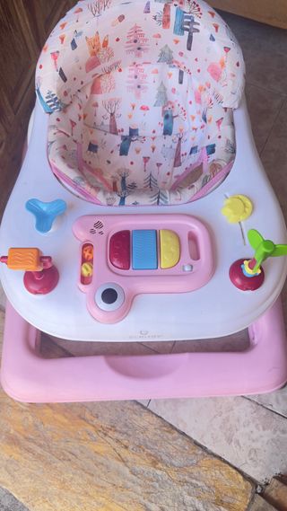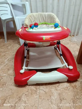 Andador para bebé de la marca Olmitos, en perfecto estado. Funciona correctamente, con bandeja de juegos (botones y juguetes) para entretener al bebé. Asiento acolchado, cómodo y limpio. 📍 Recogida en mano