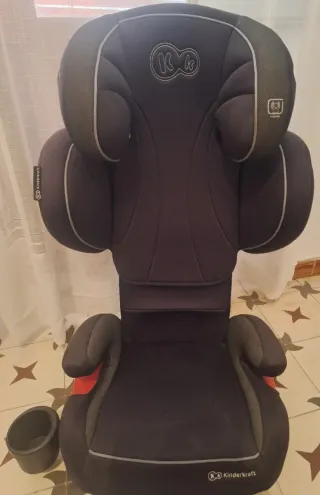 Silla de coche Kinderkraft Unity en color negro. Diseñada para la seguridad y comodidad. silla del Grupo 2/3 apta niños de 15 a 36 kg (aproximadamente de 3,5 a 12 años). Instalación: Utiliza el sistema ISOFIX para un montaje rápido y estable, además de requerir el cinturón de seguridad del vehículo. Seguridad: Cuenta con protección lateral reforzada (Side Protect System) y reposacabezas ajustable para acompañar el crecimiento del niño. - Laterales acolchados. - Incluye portavasos.
