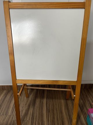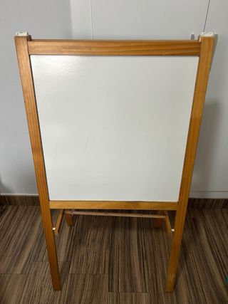 Pizarra de madera de Ikea, ideal para que los más pequeños den rienda suelta a su creatividad. - Estructura de madera. - Superficie blanca para escribir o dibujar. - Superficia de tiza