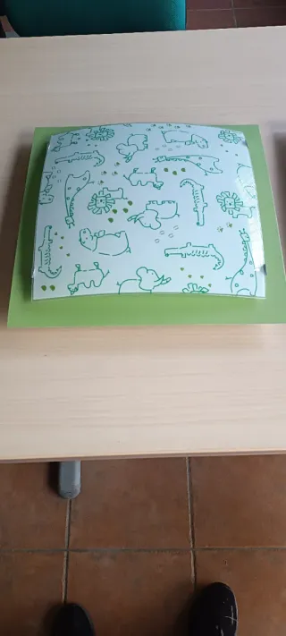 Plafón de techo con diseño infantil de animales. - Dibujos de animales en color verde. - Base de color verde. - Diseño de animales en color rojo.precio por unidad