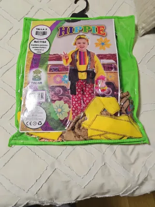 Disfraz de estilo hippie para niño, talla 2. Perfecto para fiestas temáticas o carnaval. - Incluye pantalón, camisa, chaleco y cinturón. - Diseño colorido y divertido.
