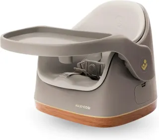 Trona portátil de la marca Maxi-Cosi, modelo Jay Booster. Su diseño es moderno y funcional. Trona Portátil 2 en 1, de 6 Meses a 3 Años, 9-15 kg, Asiento Bebé Suelo, Bandeja Ajustable, Fácil de Limpiar, Diseño Compacto, Espaciosa, Elegance Beige - Bandeja extraíble. - Arnés de seguridad. - Base con acabado imitación madera.
