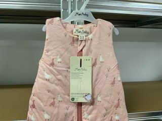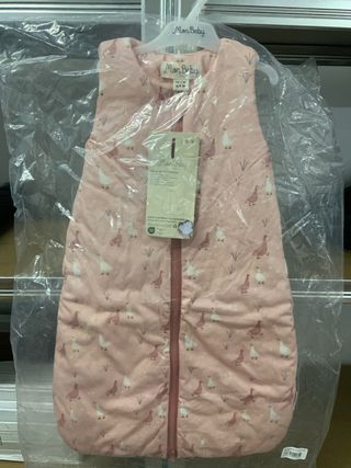 Saco de cuna sin mangas de la marca Mon Baby, con un adorable estampado de patos. - Talla: 70 cm / 4-9 meses. - Color: Rosa pálido y beige. - Diseño sin mangas.