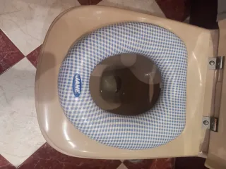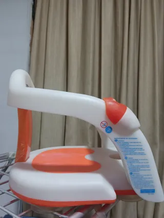 Adaptador para el baño de bebés, diseñado para ofrecer seguridad y comodidad. - Color blanco y naranja. - Material de plástico resistente. - Con asas de apoyo.