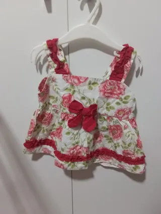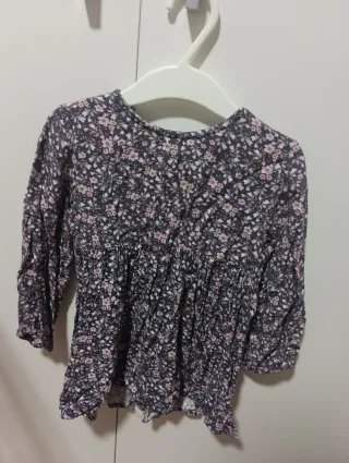 Preciosa prenda de ropa para niña de 2 a 3 años con un estampado floral. - Diseño con flores pequeñas. - Mangas largas. - Corte fruncido en la cintura.