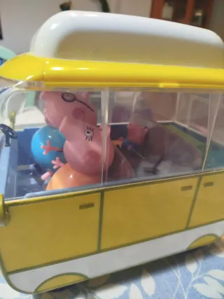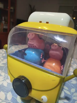 Caravana de juguete de Peppa Pig. - Incluye figuras de Peppa Pig y su familia, No tengo la figura de Peppa pig - Diseño colorido y divertido.