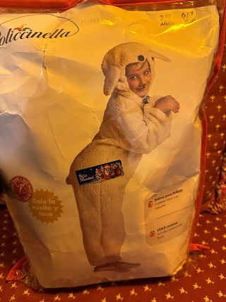 Disfraz de oveja para niños, ideal para fiestas o eventos. - Talla: 3/5 a 6/7 años. - Incluye mono con capucha. - Marca: Policcinella. - Precio original: 21.00€.