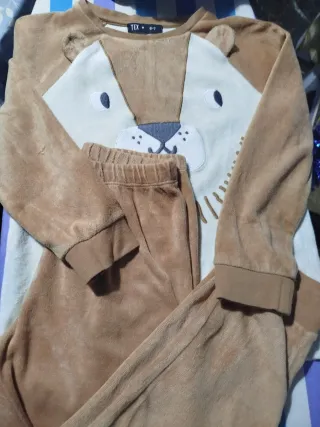 Conjunto de pijama de tacto suave para niños y niñas, con un divertido diseño de león. - Pijama de dos piezas. - Tejido de peluche. - Estampado de león en la parte delantera. - Talla 6-7 años.