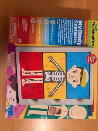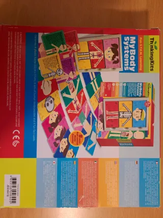 Juego educativo MyBody Systems de Thinking Kits. Fomenta el aprendizaje STEM. - Incluye 8 sets de puzzles a todo color del cuerpo humano. - Contiene un marco de plástico (22cm x 17cm). - Incluye 4 tarjetas de datos divertidas. - Recomendado para mayores de 4 años.
