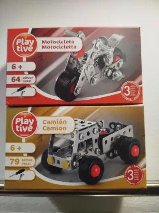 Set de construcción Playtive con dos modelos. - Incluye una motocicleta con 64 piezas. - Incluye un camión con 79 piezas. - Apto para mayores de 6 años.