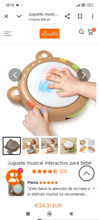 Juguete musical interactivo de la marca Tumama, ideal para bebés. Fomenta el desarrollo sensorial y la coordinación. - Diseño colorido y atractivo. - Botones con luces y sonidos. - Materiales seguros para bebés. Conserva la caja original pero está pintada, como se ve en la foto.
