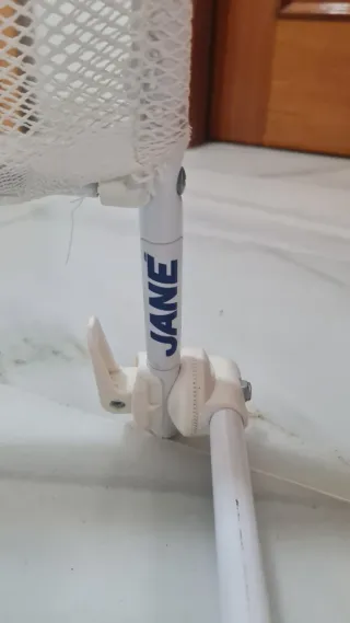 Barandilla de seguridad para cama infantil de la marca Jane. Ayuda a prevenir caídas durante la noche. - Estructura de metal blanco. - Malla de tela blanca. - Mecanismo de cierre y ajuste.