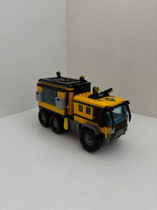 Camión centro de operaciones móvil de Lego. - Diseño robusto y detallado. - Colores amarillo y negro. - Ruedas todoterreno.