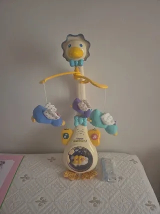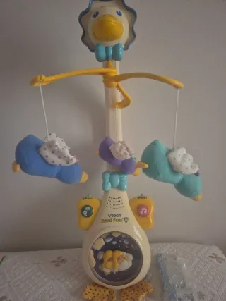 Proyector musical con forma de mamá pata de Vtech. Ayuda a crear un ambiente relajante para los más pequeños. Incluye las pilas. - Proyector de luces y sonidos. - Incluye peluches colgantes. - Diseño divertido de pato.