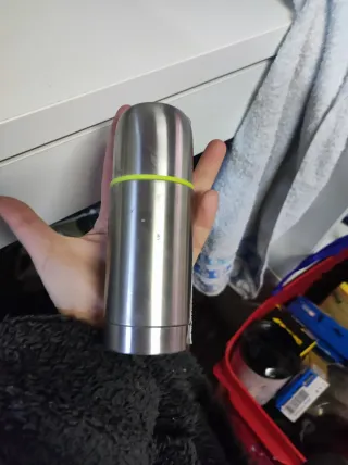 Termo de acero inoxidable para mantener tus bebidas a la temperatura deseada. Su diseño es elegante y práctico. - Material: Acero inoxidable. - Color: Plateado.
