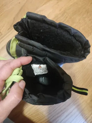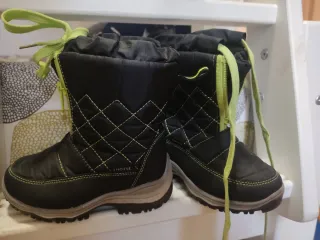 Botas de nieve, tipo descanso, marca Lhotse para niños, talla n° 25. - Interior forrado tipo polar. - Color negro con detalles en verde lima. - Cierre de cremallera frontal y cordón para mayor ajuste. - Suela de goma antideslizante.