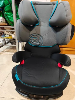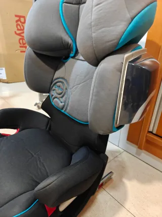 Silla de coche Cybex Pallas 2 Fix para niños. - Diseño en color gris y negro. - Detalles en azul. - Reposacabezas ajustable. - Sistema de fijación Fix.