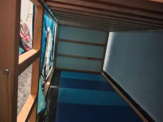 Cama infantil de madera, ideal para habitaciones de niños. - Estructura de madera resistente. - Diseño seguro para los más pequeños. - Incluye colchón y almohada - Se ve de por no usar