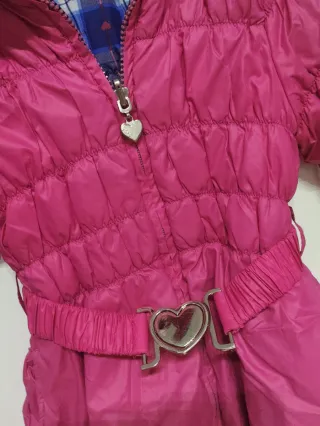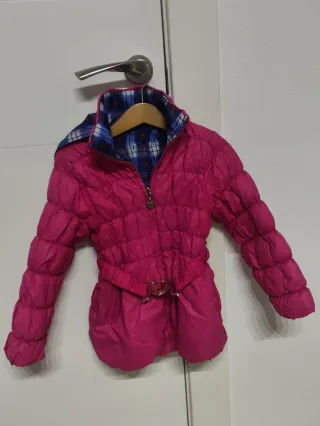 Abrigo acolchado reversible para niña de la marca Mayoral. Un lado es de color rosa fucsia y el otro tiene un estampado de cuadros. Da mucha talla - Cierre de cremallera. - Cinturón con hebilla. - Cuello alto.
