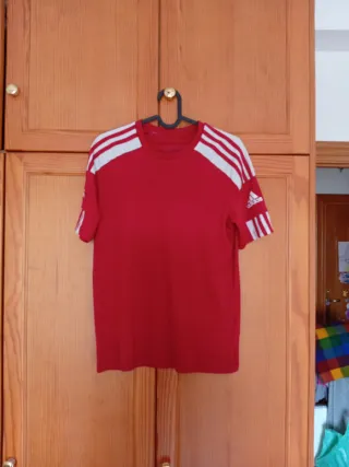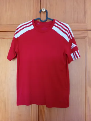 Camiseta deportiva Adidas para niño en color rojo. - Diseño con las icónicas tres rayas blancas en las mangas y hombros. - Logo de Adidas en la manga. Talla 164. Modelo Squadra