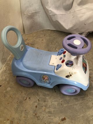 cochecito corre pasillos de Frozen. tiene sonidos solo que no tiene pilas. pero funciona todo bien