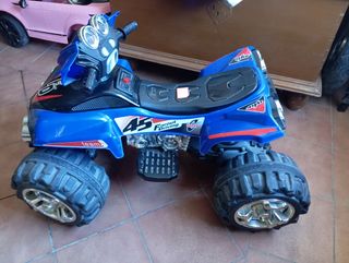 Quad eléctrico infantil en color azul, casi nuevo. Ideal para los más pequeños. - Diseño deportivo. - Ruedas todoterreno. - Detalles de competición. No va la batería de hay su precio