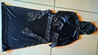 Disfraz de la Parca para niños. - Túnica negra con capucha. - Detalle de estampado plateado en mangas y capucha. - No incluye guadaña.
