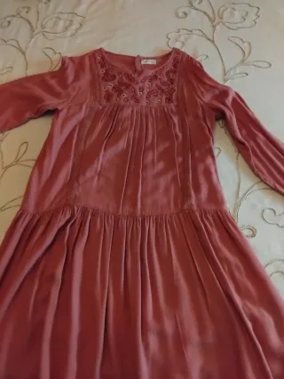 Vestido de la marca Brotes en talla 12. Precioso diseño con detalles bordados en la parte superior. - Color rosa. - Manga larga. - Cuello redondo. - Falda con vuelo.