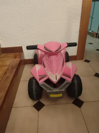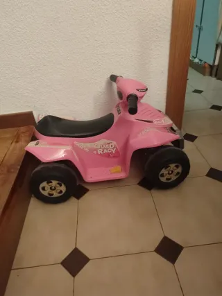Divertido quad a batería para los más pequeños, con un llamativo diseño en color rosa y el nombre Quad Racy. - Diseño inspirado en quads reales. - Ruedas resistentes para diferentes superficies. - Asiento cómodo para el conductor.