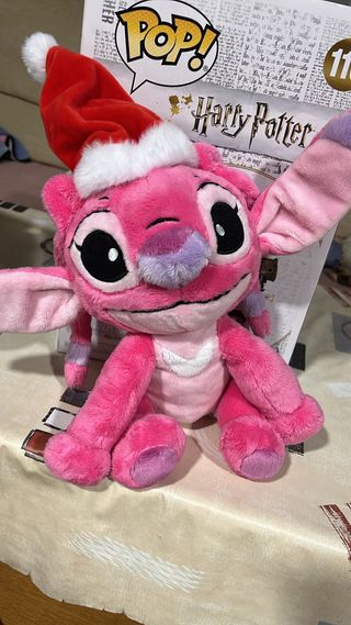 Peluche de Stitch con temática navideña. - Color rosa. - Incluye gorro de Papá Noel.