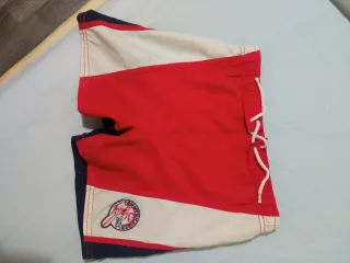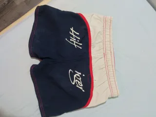 Lote de bañadores para niño de la marca Tommy Hilfiger, decathlon y Primark. Incluye varios modelos con diseños coloridos. - Diseño con bloques de color rojo, blanco y azul marino. - Detalle de logo en uno de los bañadores. - Cintura con cordón ajustable.