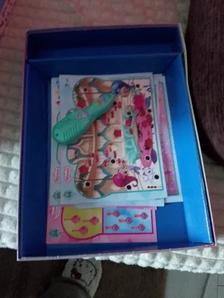 Set de pegatinas y boli magnético de Shimmer y Shine. - Boli magnético de color verde. - Varias hojas de pegatinas temáticas.