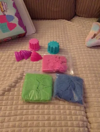Kit de arena de algodón para crear divertidos cupcakes. - Incluye 3 bolsas de 300g de arena. - Incluye 4 formas diferentes para moldear. - Permite hacer tus propios cupcakes.