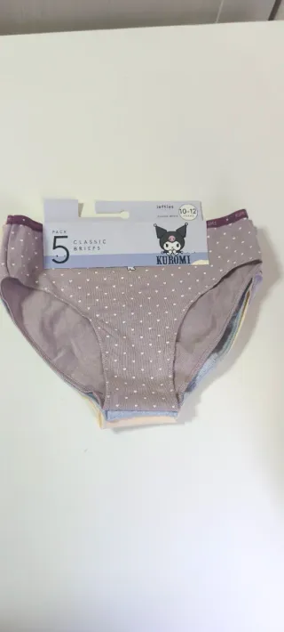 Pack de 5 braguitas infantiles de Lefties con diseño de Kuromi. Talla 10-12 años. Diseño clásico.