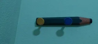 Percha infantil con un divertido diseño de lápiz. - Forma de lápiz. - Dos colgadores redondos de colores (amarillo y azul).