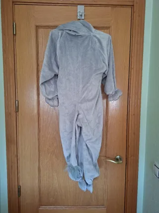 Disfraz de elefante suave y cómodo, ideal para niños. - Talla 5-6 años. - Diseño de elefante con trompa y orejas. - Color gris con detalles en rosa.