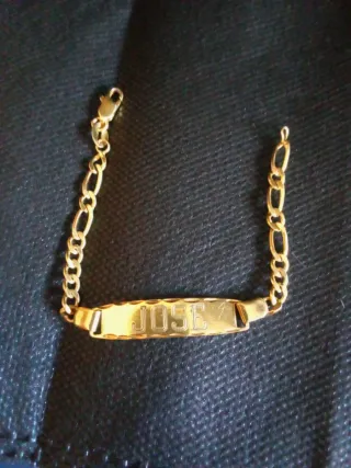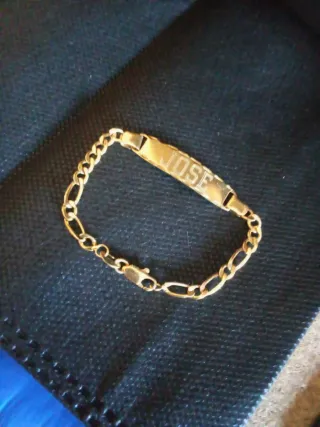 Pulsera esclava para bebé con el nombre JOSE grabado y fecha por detrás. - Diseño clásico y elegante. - Cadena con eslabones finos. - Cierre seguro. -Largo 14'5 cm