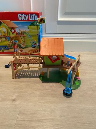 Set de juego Playmobil City Life. Completo con su caja e instrucciones . La bandera hay que pegarla en la parte de abajo para que se mantenga recta, pero como se aprecian en las fotos con un poquitito de pegamento se queda recta. - Incluye figuras y accesorios. - Diseñado para niños de 4 a 10 años.