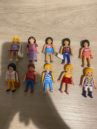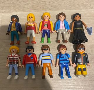 Conjunto de diez figuras de Playmobil. - Incluye figuras variadas. - Ideal para coleccionistas o para jugar. 5 chicas y 5 chicos. Se pueden comprar por separado. Cada figura 2€, todas juntas 18€.