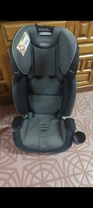 Silla de coche de la marca Graco, color gris oscuro. - Diseño acolchado. - Reposabrazos. - Portavasos. -10 posiciones -Isofix